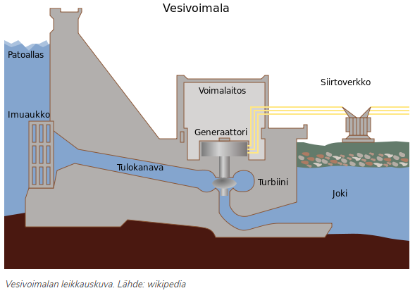Yli 90 prosenttia virtaavan veden energiasta saadaan sähköksi.